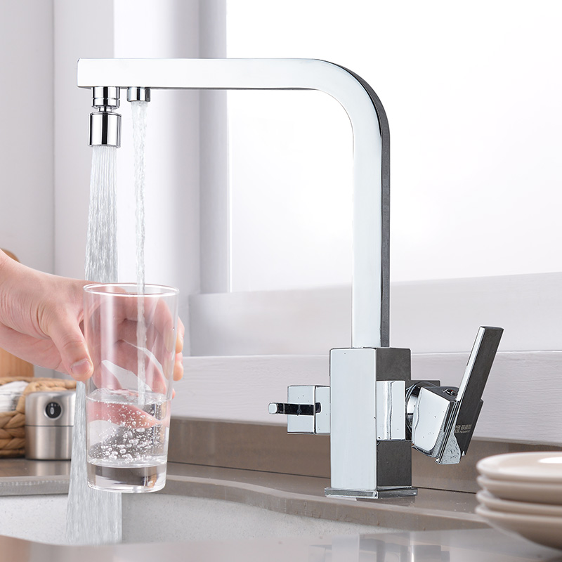 Full copper three-in-one tap hot and cold kitchen washing basin sink Three used with purified machine Domestic dishwashing pool