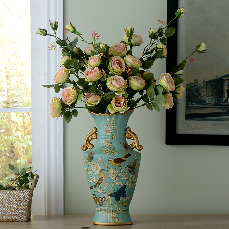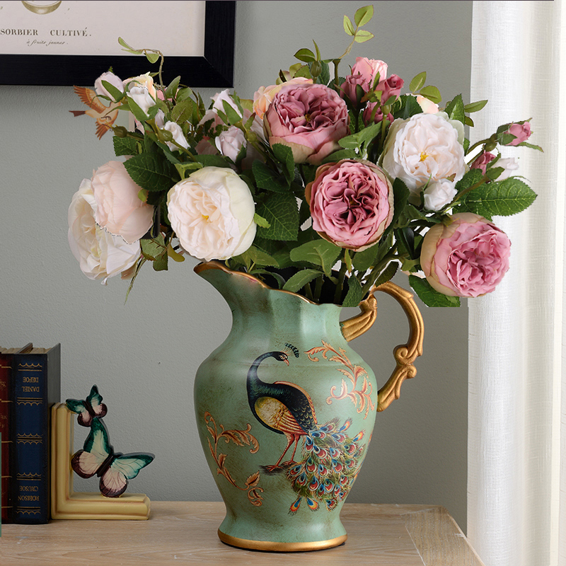 Margaret vase without flower Margaret vase with 12 bundles Austen rose green bottom peacock vase without flower green bottom peacock with 12 Austen rose suit single double-ear vase double