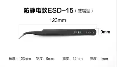 Anti-static tweezers black stainless steel thick pointed elbow flat head electronic forceps disassembly machine electronic repair tool