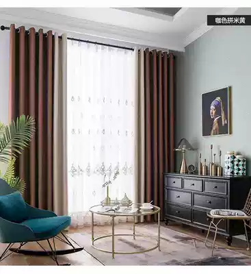 Solid color thick linen cotton linen modern simple living room bedroom custom curtain fabric finished full shading Special