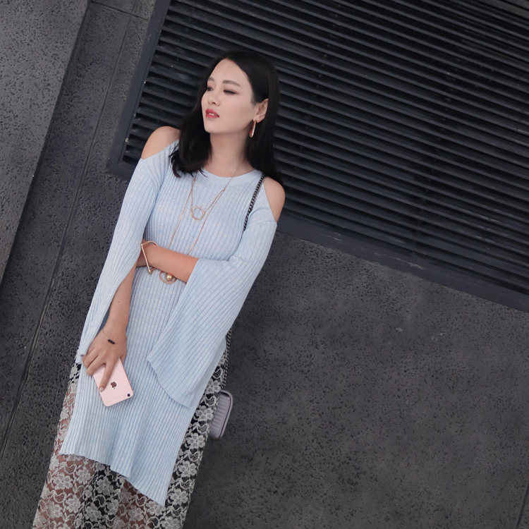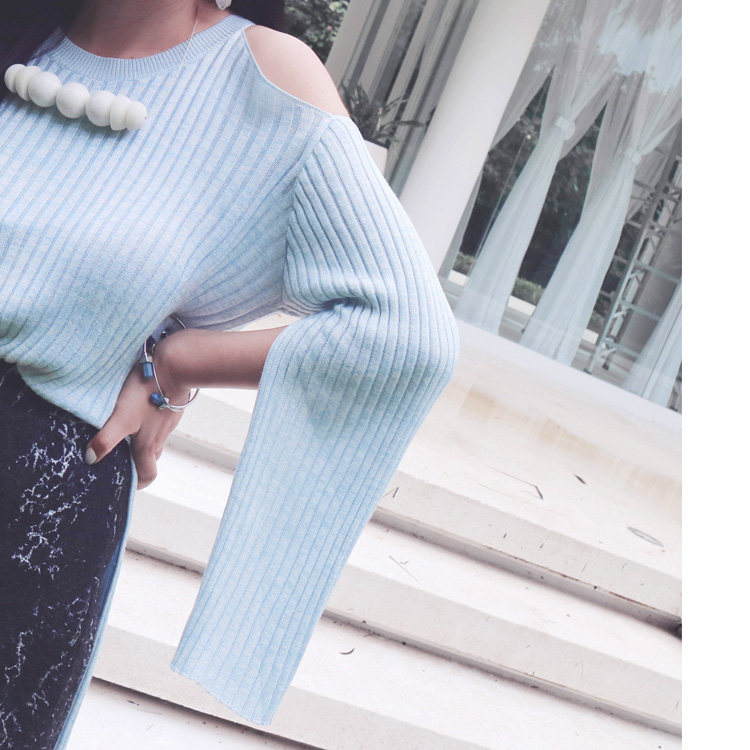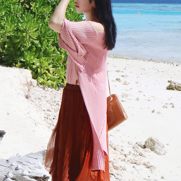 (LAMBO EXCLUSIVE) Mélange Mercerized Tencel Cotton Yarn High Slit Off Shoulder Knit Sweater