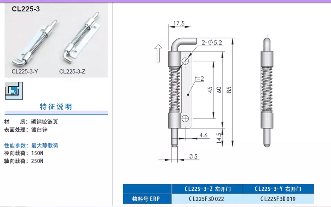 Iron hinge CL225-3 Left iron hinge CL225-3 Right stainless steel hinge CL225-3 Left stainless steel hinge CL225-3 Right