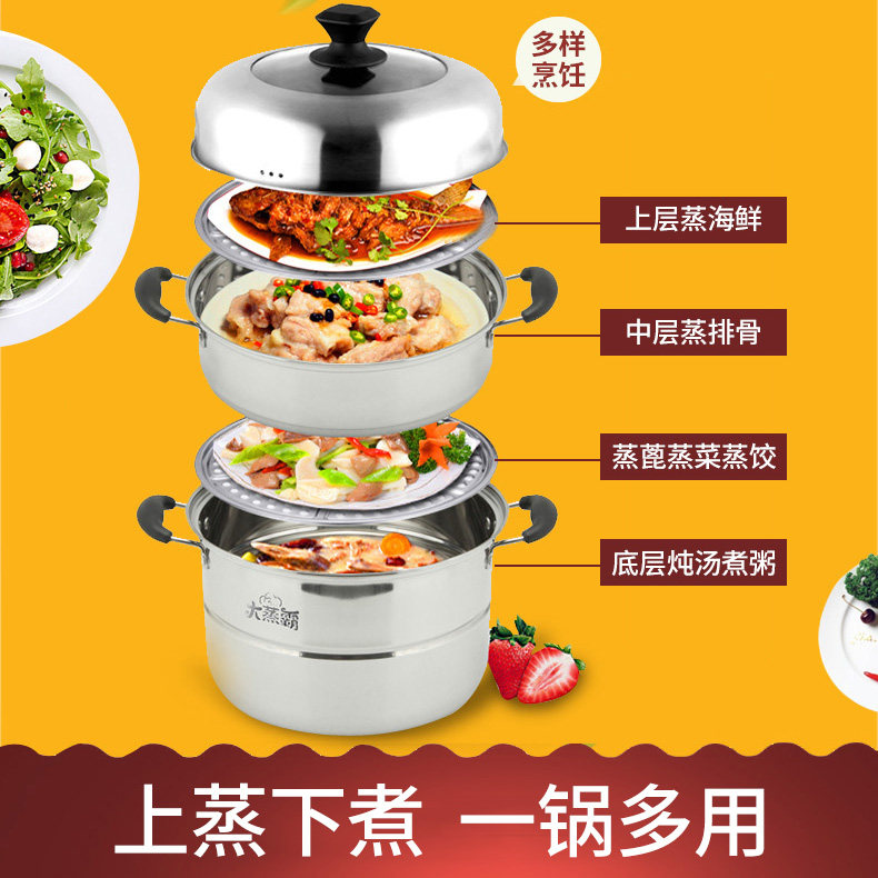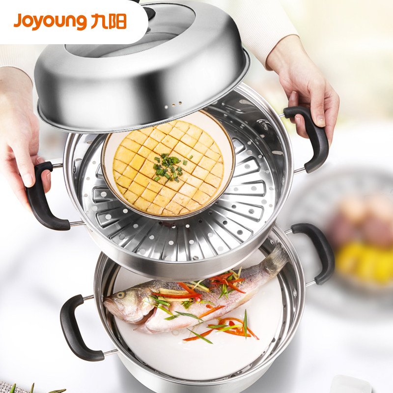 Jiuyang stainless steel steamer Household large-capacity thickened three-layer steamer steamed fish steamed steamed buns induction cooker gas stove