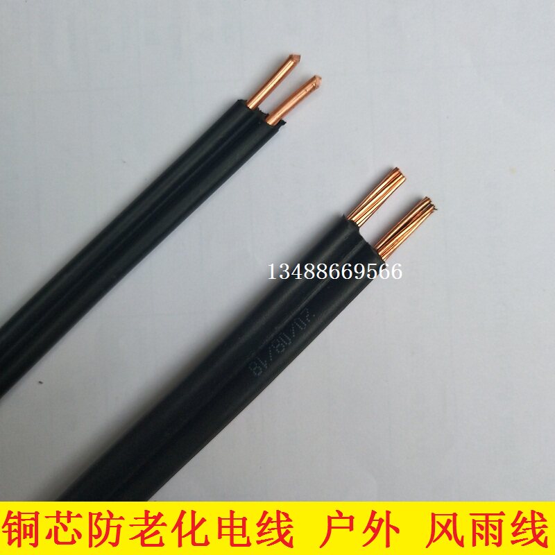 Copper core anti-aging 2X10 square flame retardant 2-core power cord Wind and rain line Household line Pure copper national standard outdoor line