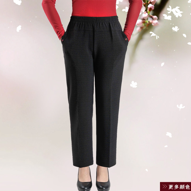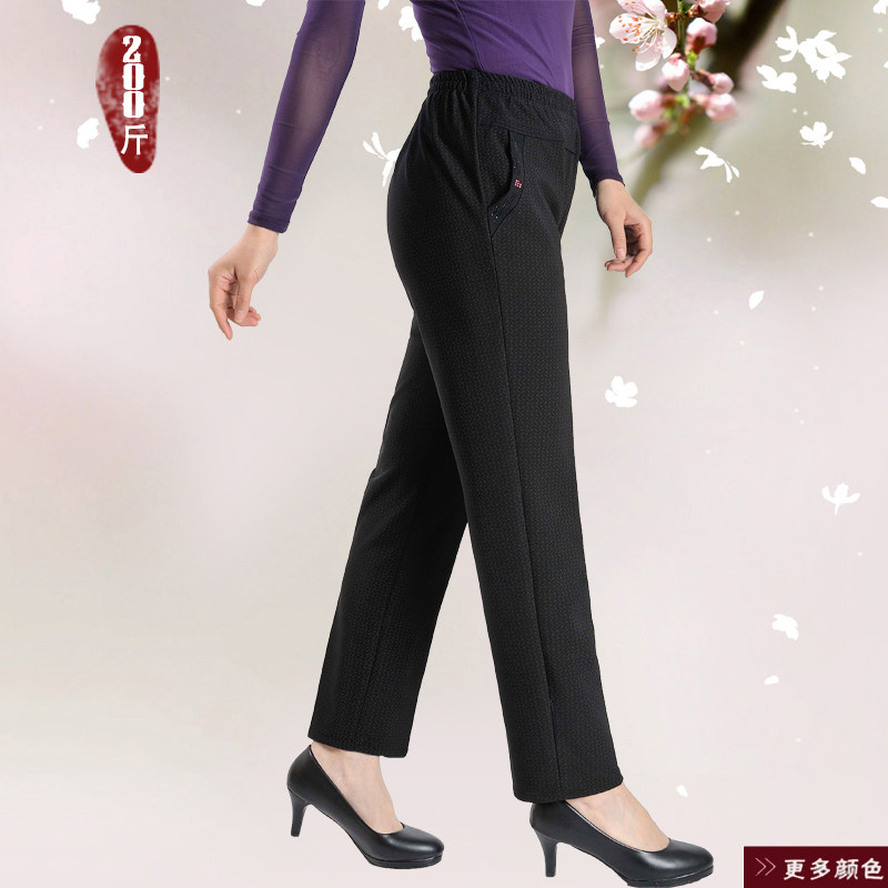 Spring and summer large size Chinese aged women pants 200 catties plus fattening up tightness high waist elastic fat Mama casual long pants
