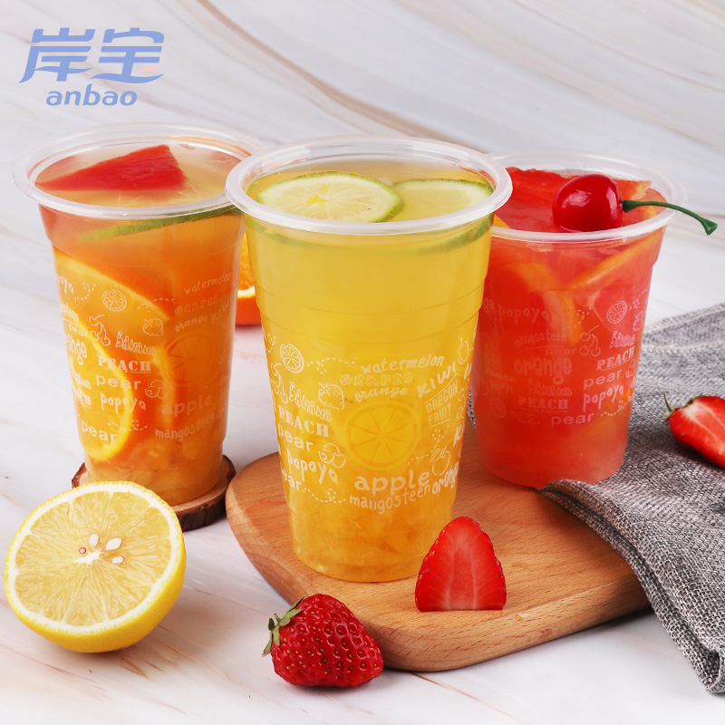 Anbao disposable milk tea cup thickened PP plastic cup juice smoothie cup 100pcs 500ml without cover
