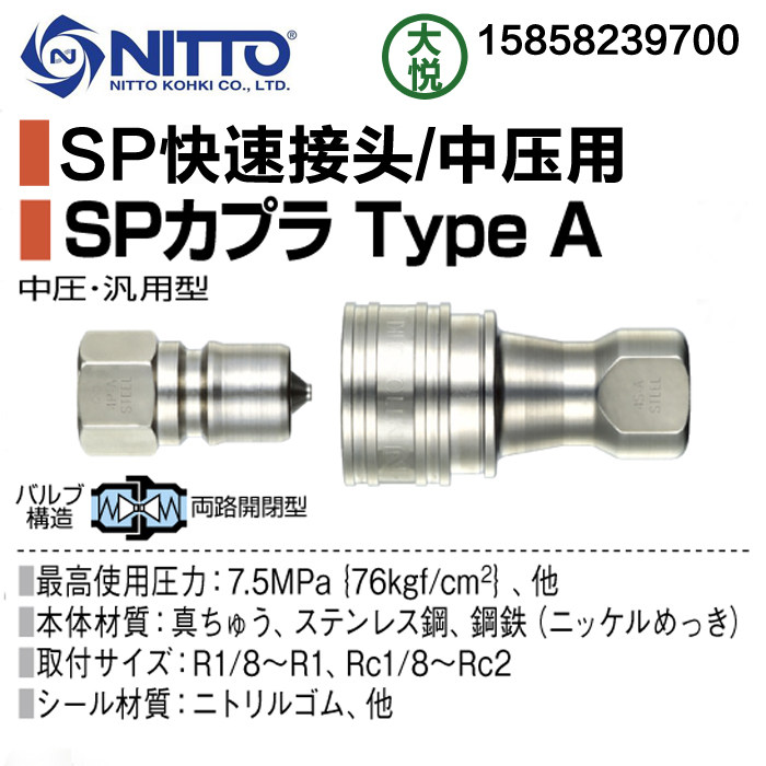 Japan's original imported NITTO KOHKI SP-A stainless steel 304 normal temperature self-sealing quick connector