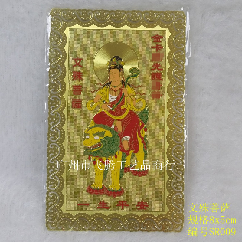 Factory direct Manjusri Bodhisattva metal Buddha body protection card copper card blessing gold card can put wallet mobile phone