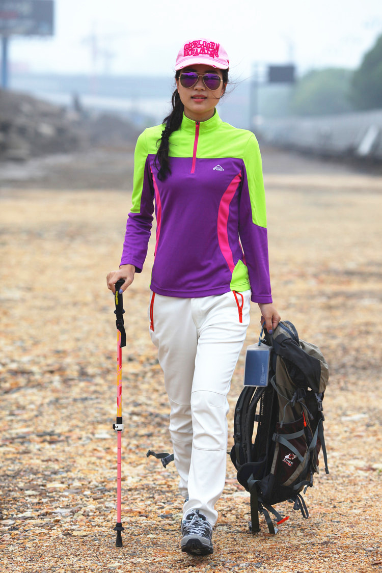 Korean version of spring and summer outdoor long-sleeved quick-drying women's stand-up collar color-blocking quick-drying T-shirt sweat-wicking breathable sports quick-drying short-sleeved