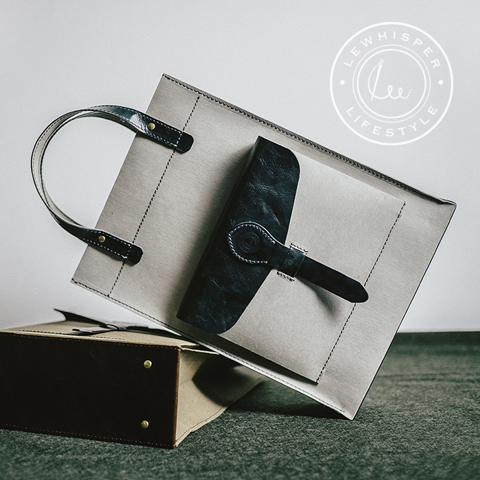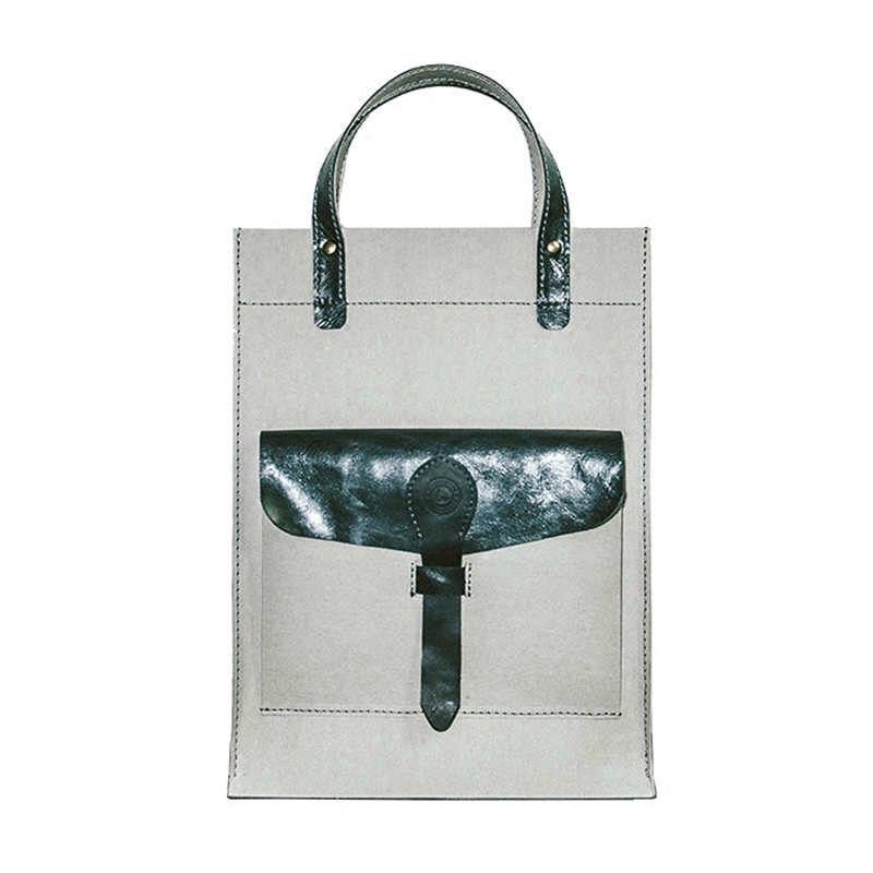 LeWhisper Import Washed Kraft Paper Hand Bag Splicing Bull Leather Yuppie Retro Handbag Shopping Bag