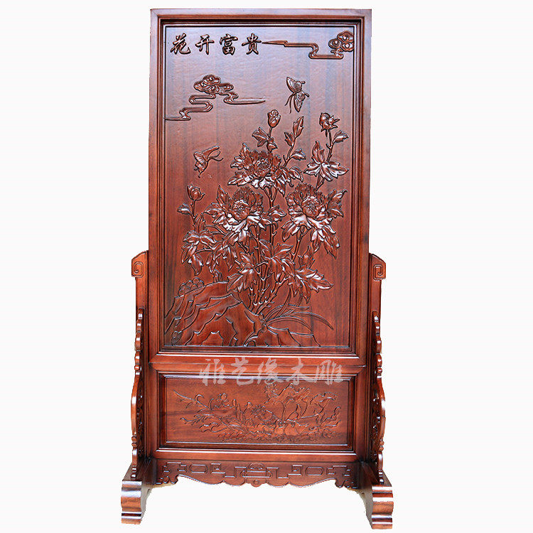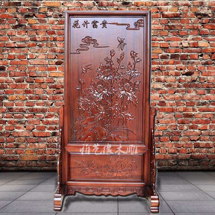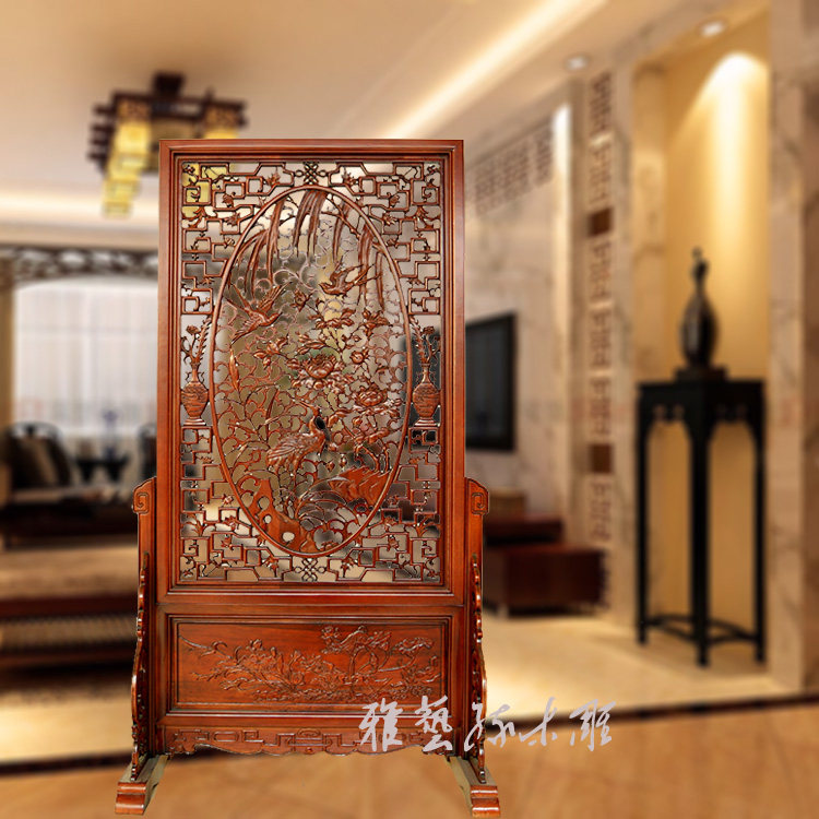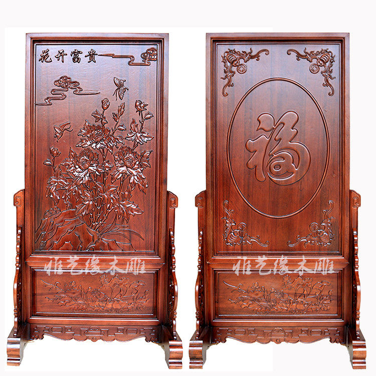 Wood carving seat screen, all solid wood head screen, double-sided carving, new Chinese-style living room partition, porch, feng shui blocking