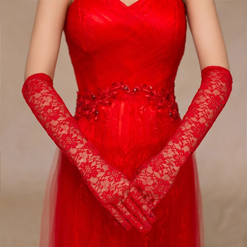 Wedding Celebration Red Gloves Bridal Red Fabric Breathable Gauze Gloves Home Goods Lady Sunscreen Short Gift Instrument