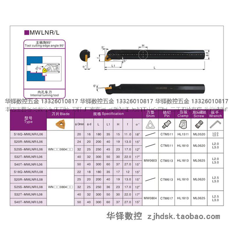 Numerical control shockproof car knife lever 95-degree composite type inner hole knife lever S16 18 20 25 32 40-MWLNR08