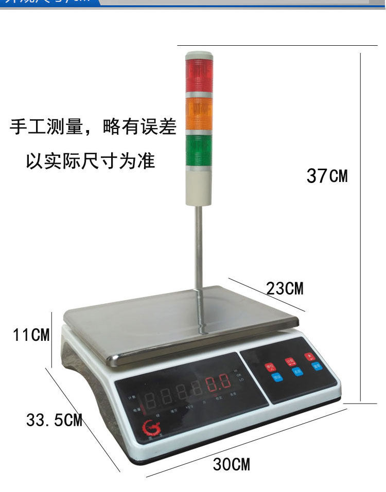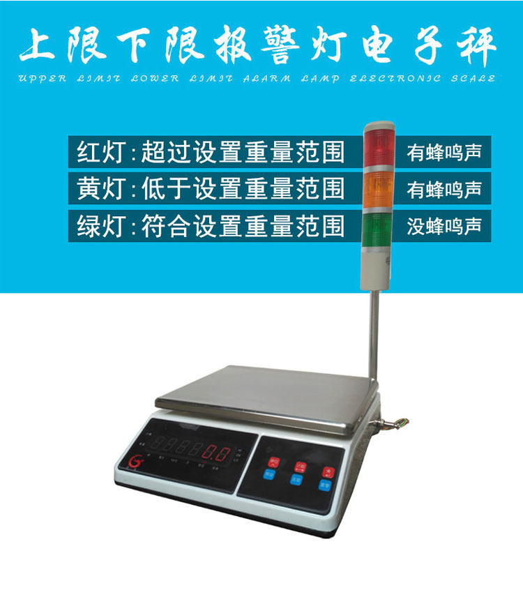 Guanlong upper and lower limit alarm scale Three-color warning lampstand weighing weight weighing electronic scale 10 15 30kg 0 1g