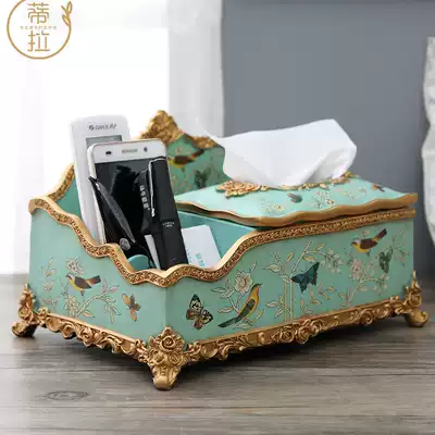 European-style multi-function tissue box Living room coffee table household toilet paper box creative American retro remote control storage box