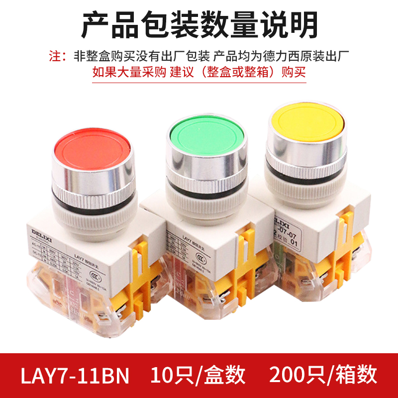 Delixi push button switch self-reset LAY7-11BN flat head button 22m LAY37 1 normally open 1 normally closed