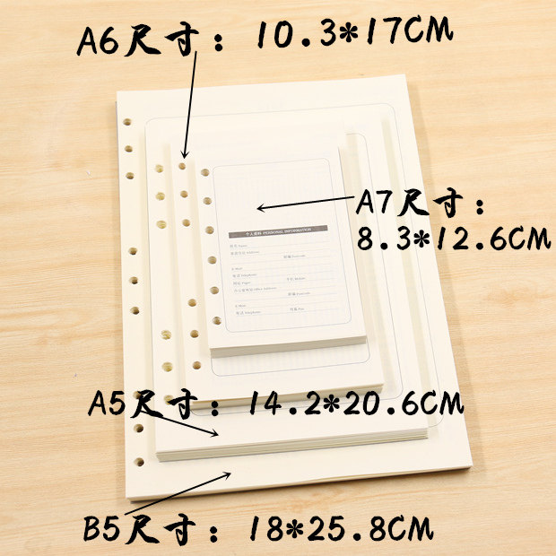 A7 6 holes loose-leaf paper A6 6 holes loose-leaf paper A5 6 holes crosswire loose-leaf paper B5 9 holes loose-leaf paper A5 6 holes blank loose-leaf paper