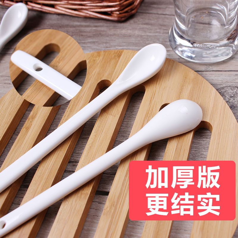 Creative special price pure white ceramic coffee spoon stirring long handle spoon cute and delicate milk thickened stirring spoon