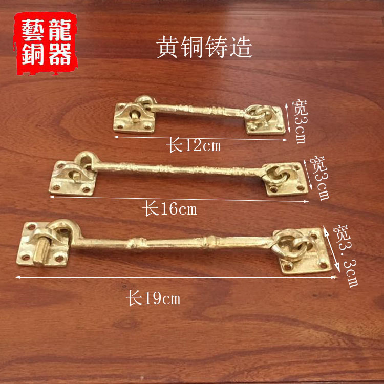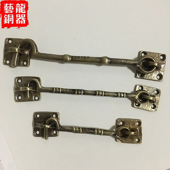 Chinese antique furniture window pure copper wind hook old-fashioned door and window support double door latch bronze bright latch