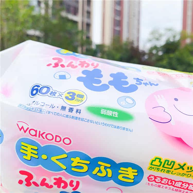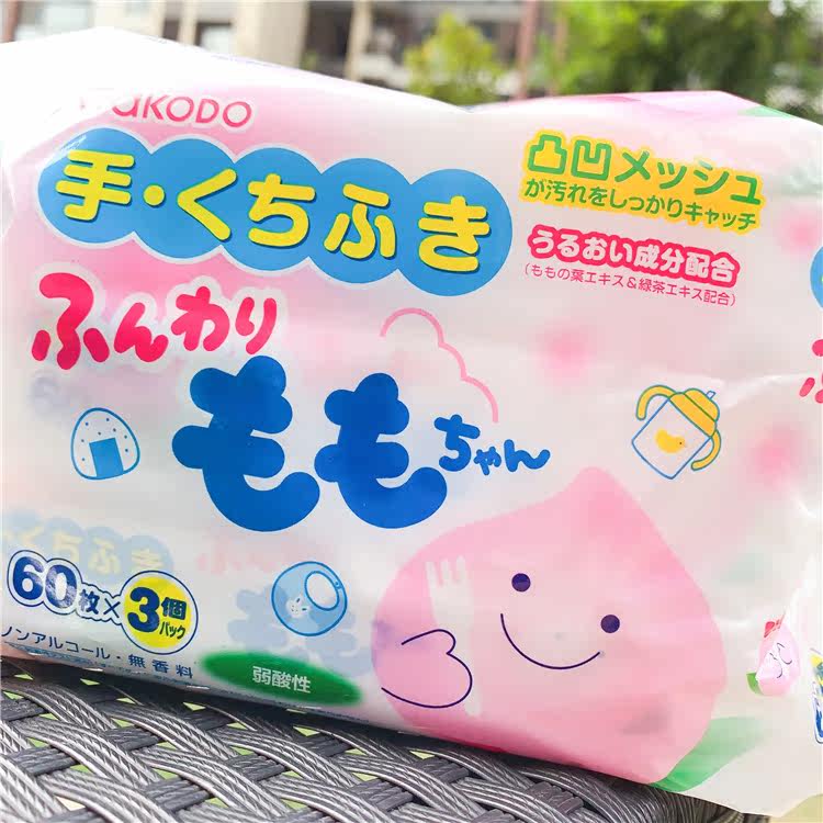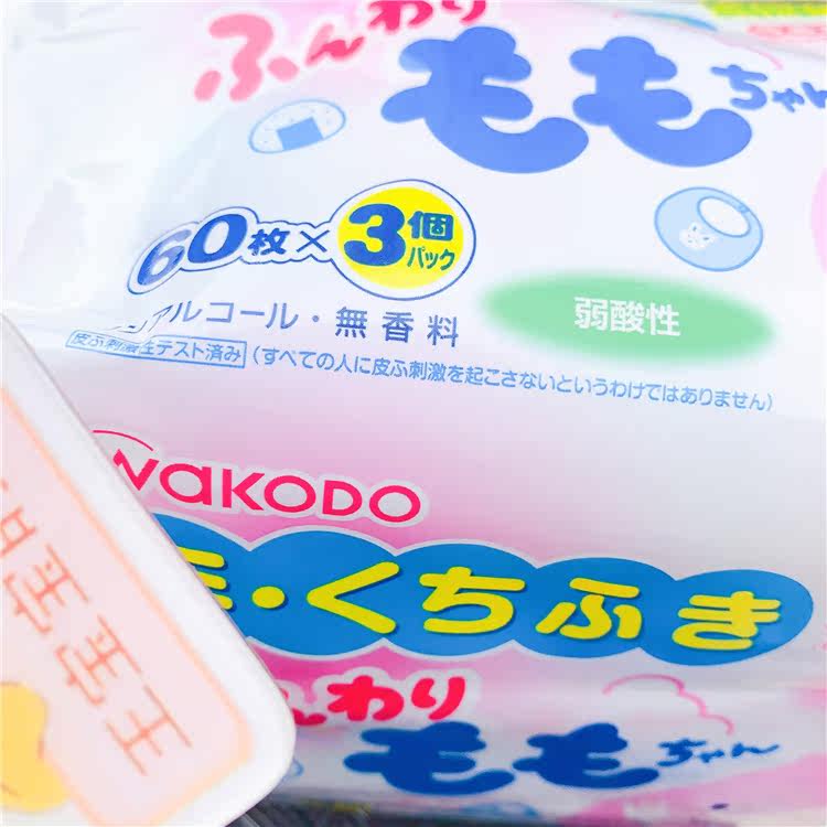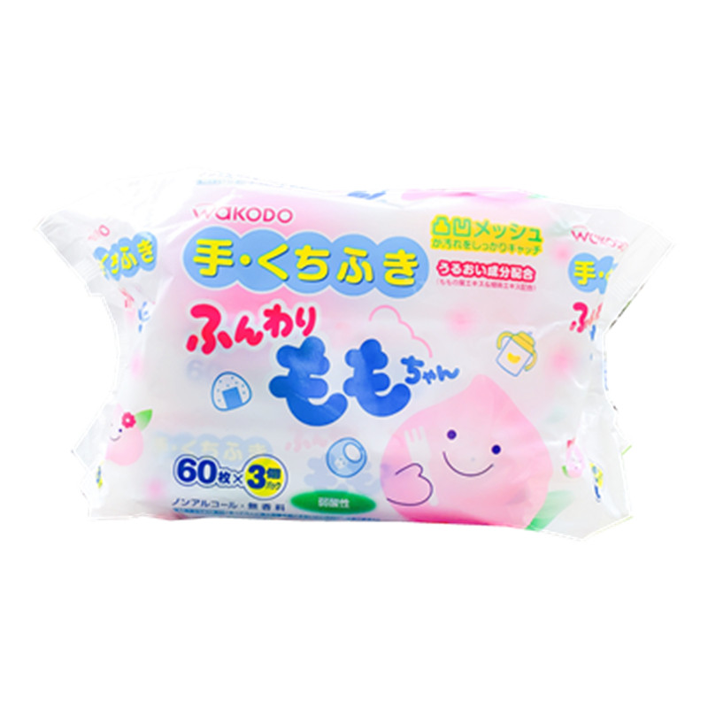 Japan's local Wakodo WAKODO peach leaf essence baby sterilization hand and mouth wipes 60 pieces 3 packs