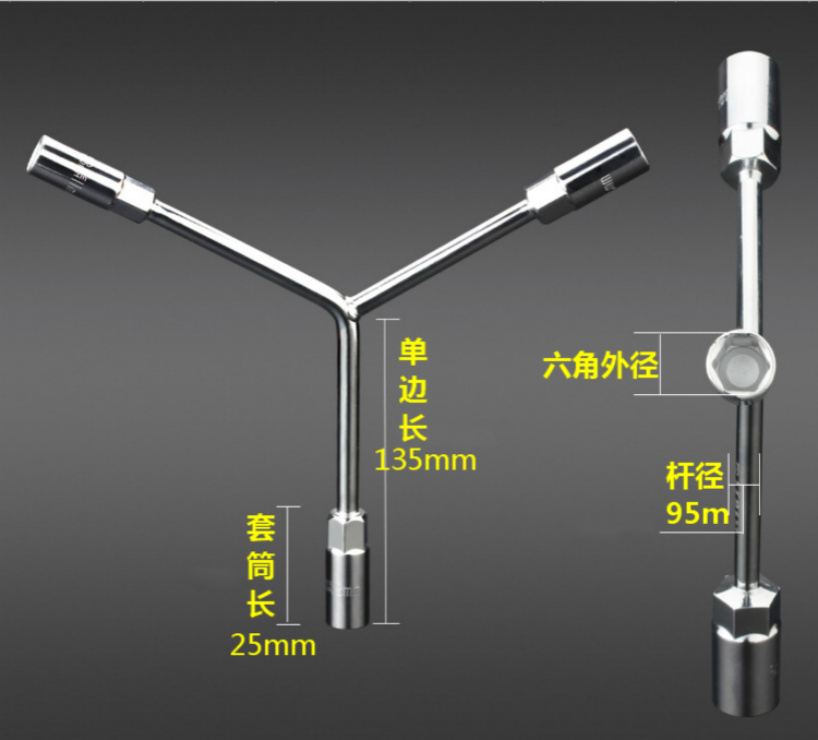 Three-pronged socket wrench Lengthened Y-shaped outer hexagonal casing wrench car locomotive engineering machine repair tool