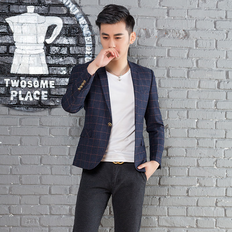 Howby wolf men's plaid small suit Spring and autumn models Korean version slim casual young hipster men's casual wear single west jacket men