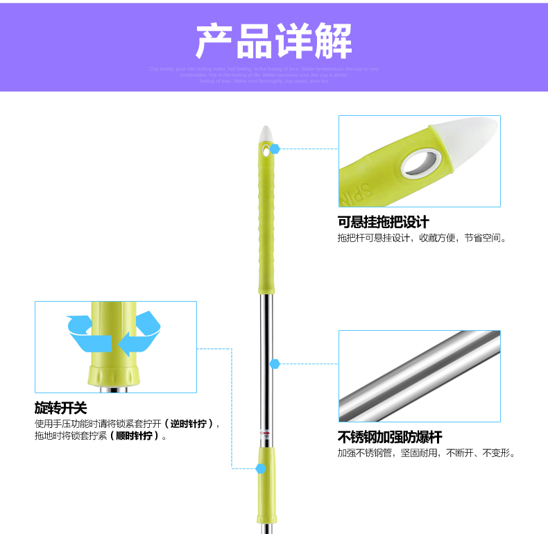 Good Hui drag rotating mop rod accessories Hand pressure mop rod Universal rotating thickened rod Plastic plate without barrel