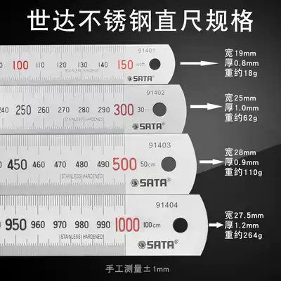 Shida ruler Steel ruler 15cm Stainless steel ruler 30cm ruler 50cm Steel ruler 100cm Scale ruler Drawing