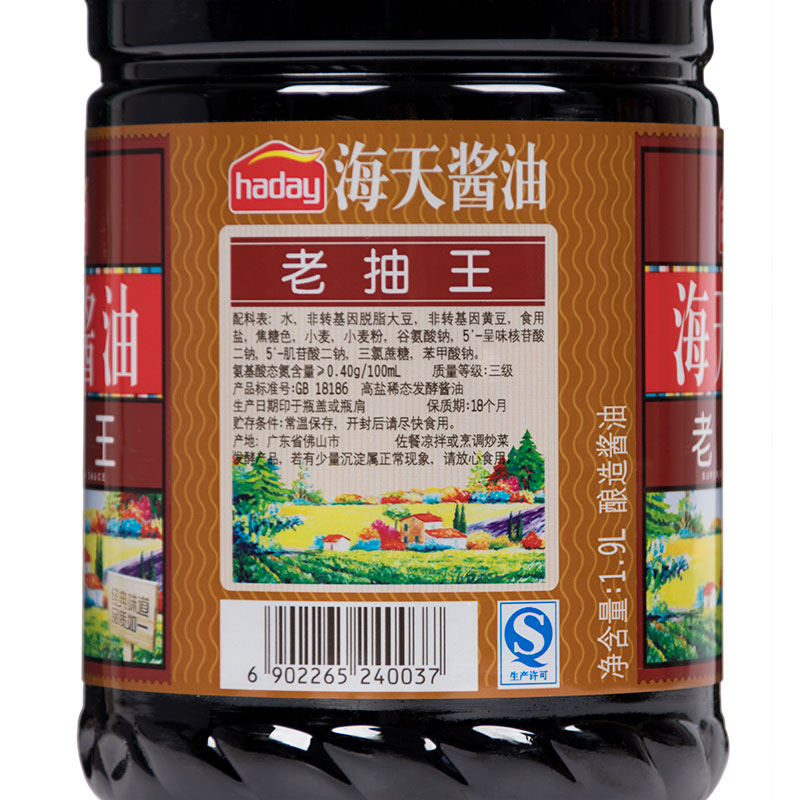 Haitian old soy sauce 1 9L soybean brewed braised stewed vegetables pickled color sauce whole box of Jiangsu, Zhejiang and Shanghai