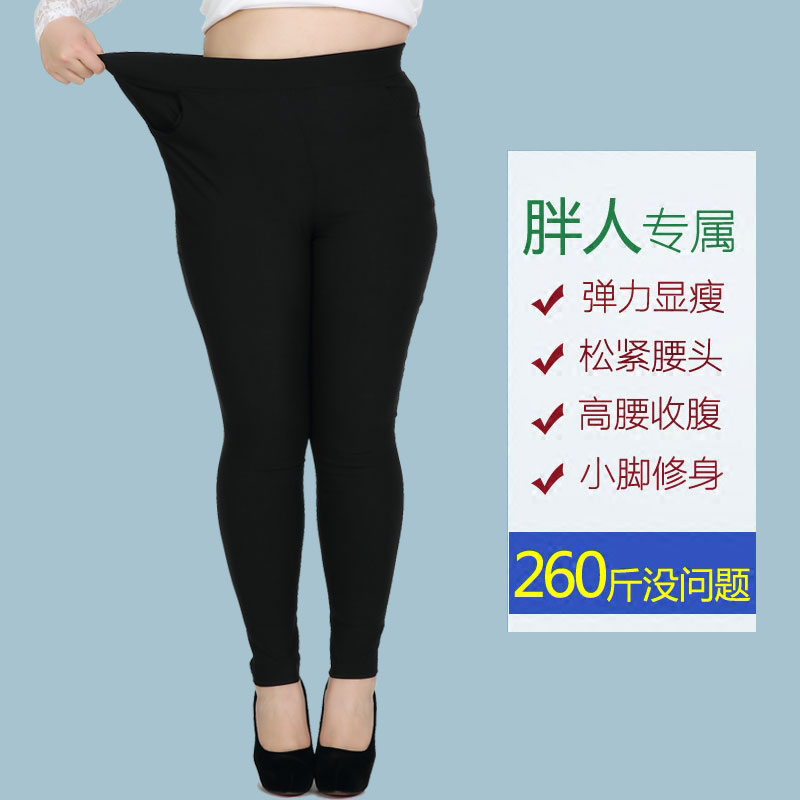 Clear cabin large size female fit 200 catty mm long pants swing with high waist lap pants plus fattening up extra-elastic narrow leggings