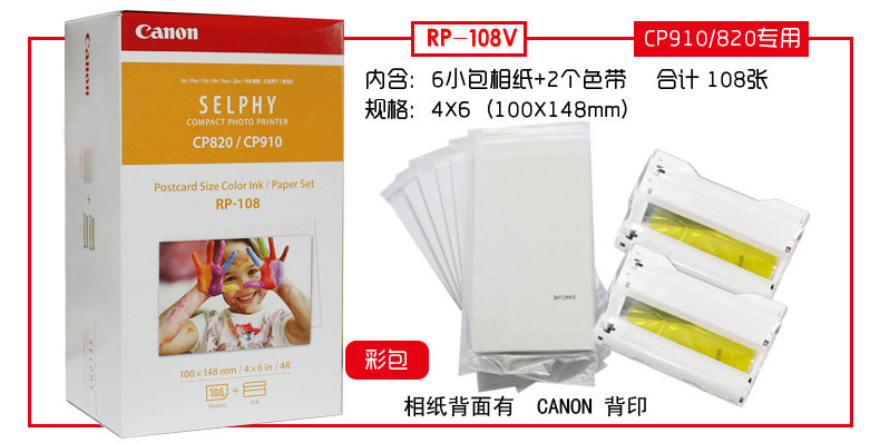 Canon RP-108 Photo paper 6 inch CP910 ink cartridge CP1200 CP1300 Special ribbon 4r