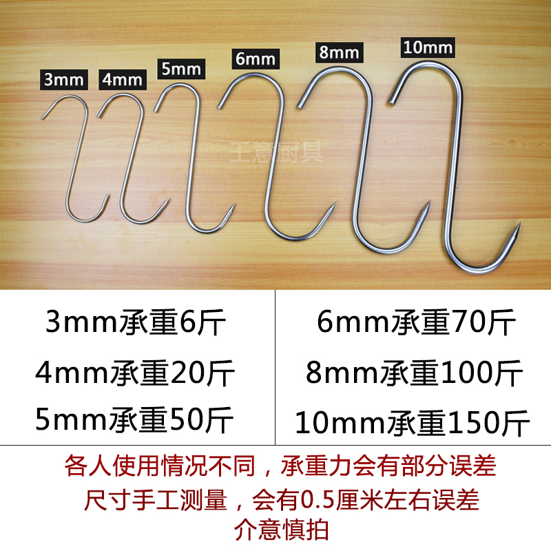 S-type hanging meat hook Stainless steel thickened pig beef hook Bacon tip hook Roast duck hook accessories Oven roast hook