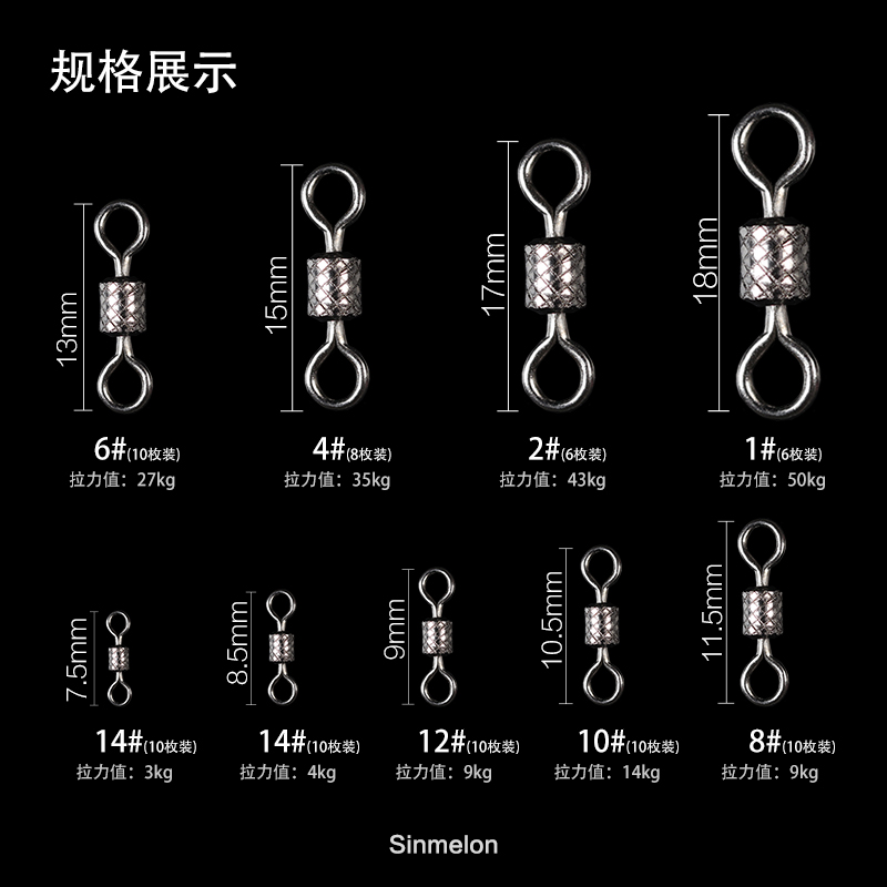 Embossed American-style swivel Taiwan fishing pattern swivel stainless steel embossed sub-line main line eight-character ring hyper-connector beauty turn