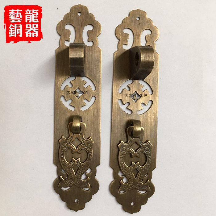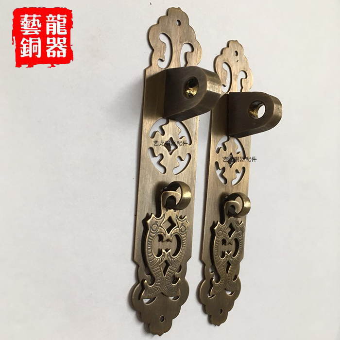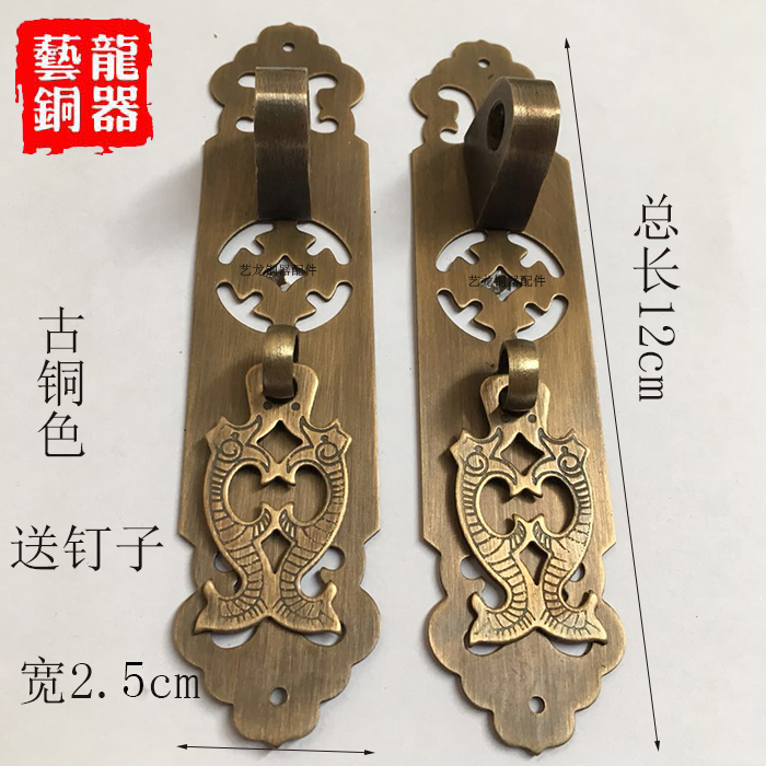 Antique new Chinese style cabinet door small handle wardrobe cabinet double hole handle pure copper strip simple classical furniture accessories
