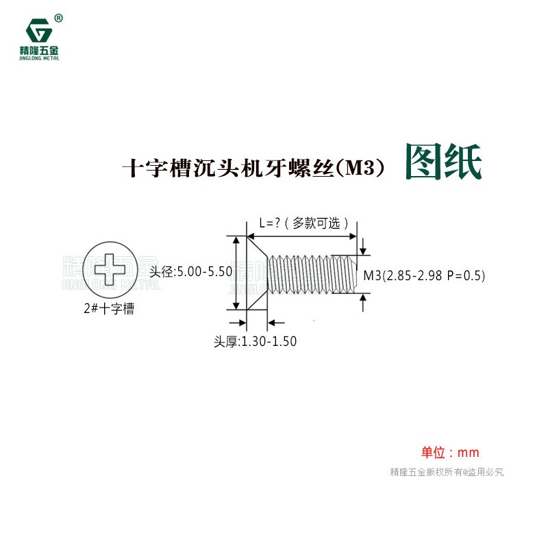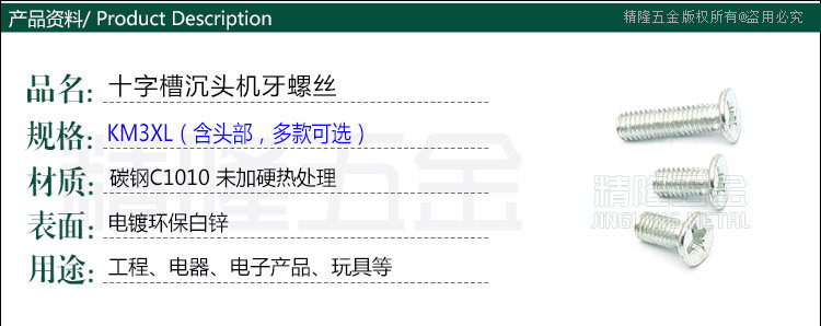 Cross countersunk screw KM3*5 6 7 8 12 Machine tooth screw F head machine nail white zinc Jinglong hardware