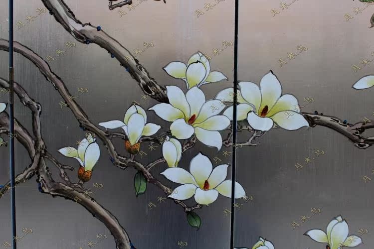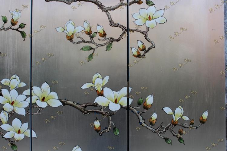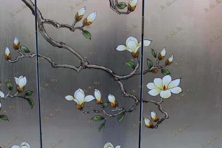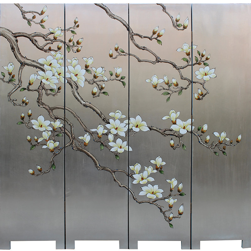 Simple modern hand painted lacquer silver foil Magnolia orchid folding partition screen family hotel porch decoration background