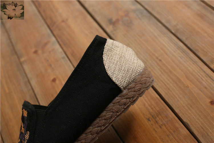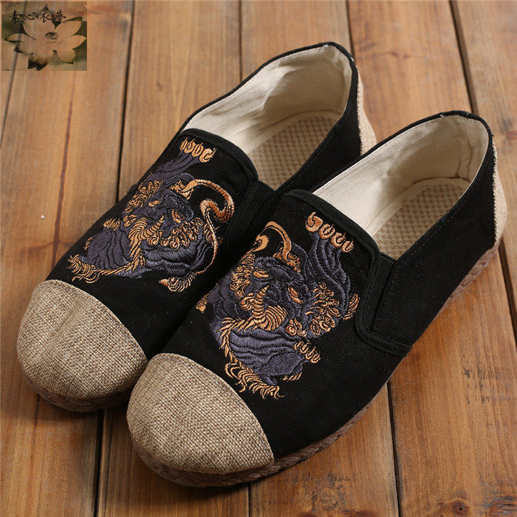 China Wind Spring Autumn Season Men's Retro Kirin Totem Embroidered Cotton Hemp Flat Heel Breathable Light Casual National Wind Cloth Shoes