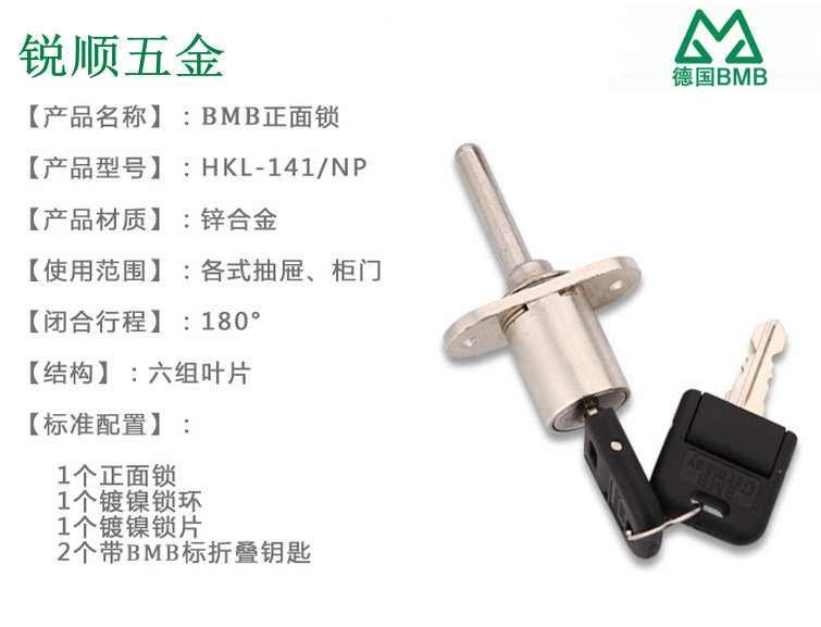 German Import BMB Frontal Lock Drawer Lock Office Furniture Lock Active Cabinet Lock Triple Pole Lock A Lock Three Cabinet Lock