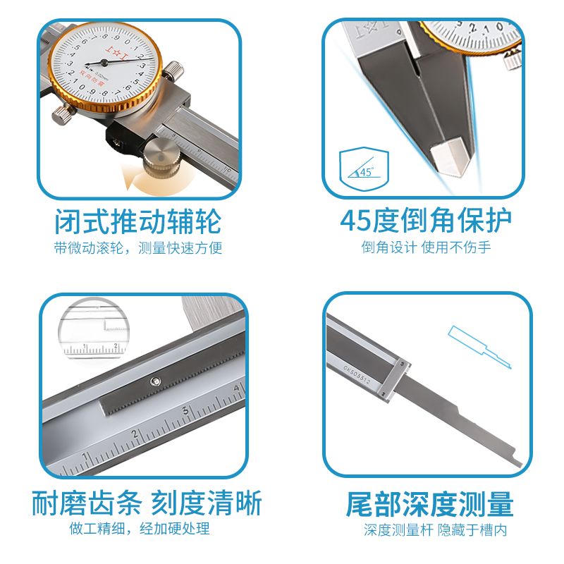Shanghai Shanggong stainless steel tape caliper 0-150MM oil gauge represents high-precision mechanical two-way shockproof 0-200