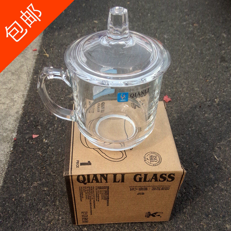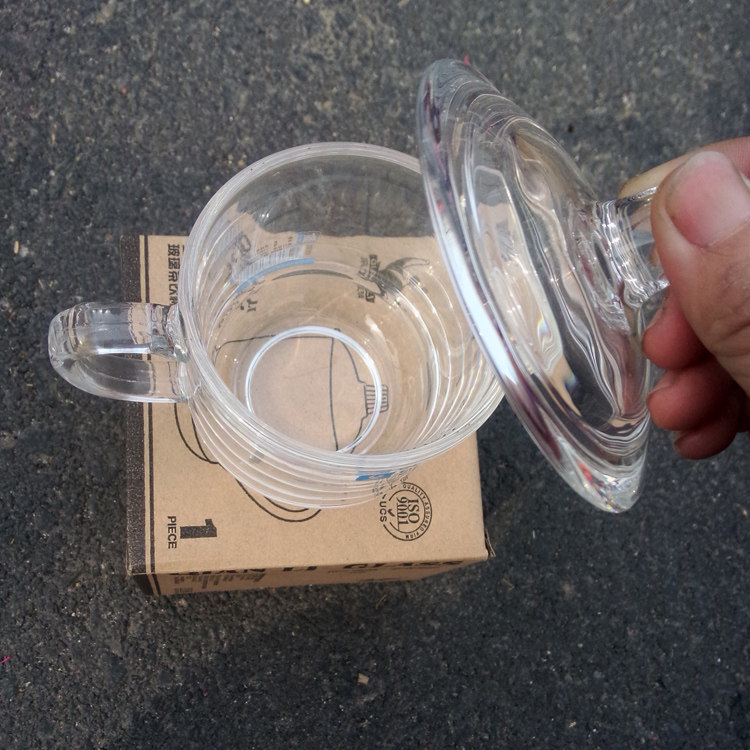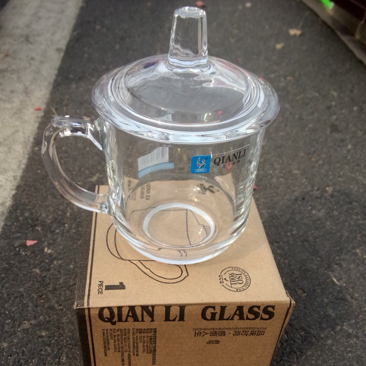 Front force thickened heat-resistant glass with lid with handle colorless transparent office tea cup Chinese round filter water cup