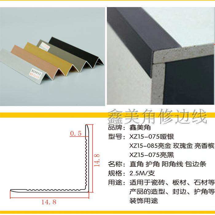Tile corner strip Matte anti-collision protection strip L-shaped aluminum alloy right angle buckle strip 7 word edging strip wall line waterproof closure