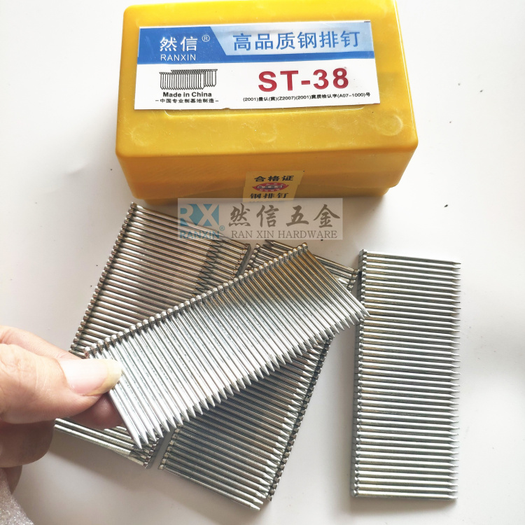 ST25 (720pcs per box of 20 boxes of FCL) ST32 (720pcs per box of 20 boxes of FCL) ST38 (720pcs per box of 20 boxes of FCL) ST50 (720pcs per box of 20 boxes of FCL) ST18 (720 sticks per box of 20 boxes per box) ST45 (720 sticks per box of 20 boxes of FCL) ST57 (1000 sticks per box, 10 boxes of FCL) ST64 (720 sticks per box of 10 boxes per box) ST15 (400 sticks per box 20 boxes of FCL) ST38 Pneumatic Steel Nail Gun (one free firing pin) ST64 Pneumatic Steel Nail Gun (one free firing pin) ST57 (720 per box, 10 boxes of FCL) ST57 (400 per box, 20 boxes of FCL) ST64 (400 sticks per box of 10 boxes) ST64 (1000 per box, 10 boxes of FCL)