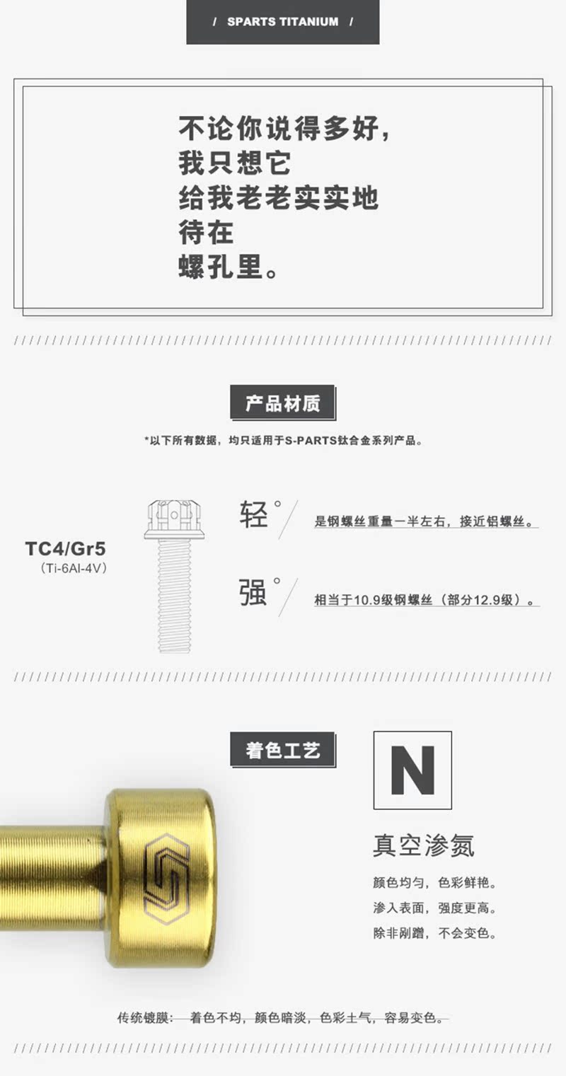 SPARTS titanium alloy m6 screw mountaineering car road head bowl set fixing the upright upper cover column head STAN titanium bolt