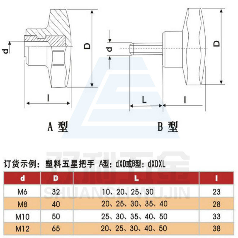 5 Star Handle Plastic Plum handle screw star-shaped hand screw pentagonal knob Nylon M8