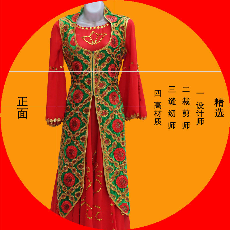 Xinjiang dance costumes Uighur ethnic minority dance performance costumes two-wear mid-length vest women's adult
