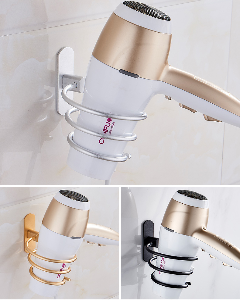 Hole-free space aluminum hair dryer rack punch-free silver aluminum hair dryer rack with hook punch-free silver space aluminum hair dryer rack punch-free golden space aluminum hair dryer rack punch-free black space aluminum hair dryer