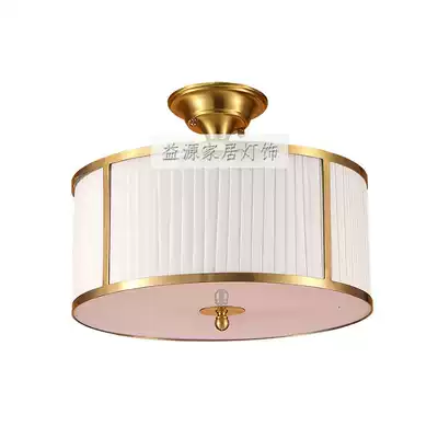 American country all copper ceiling lamp European living room dining room bedroom lighting LED fabric balcony porch copper lamps