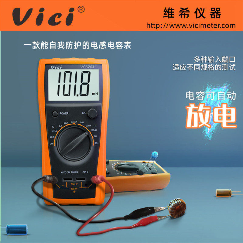 Vicht digital inductance and capacitance meter VC6243 portable automatic discharge anti-burning inductance and capacitance tester