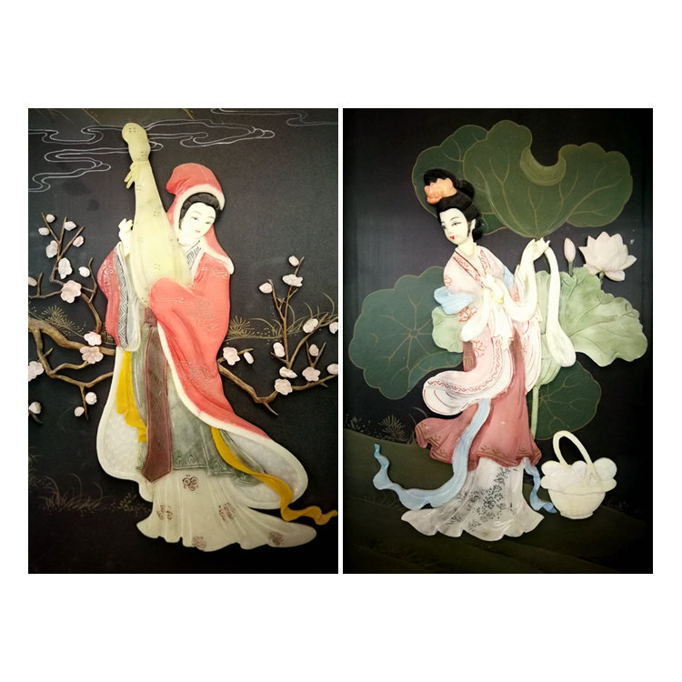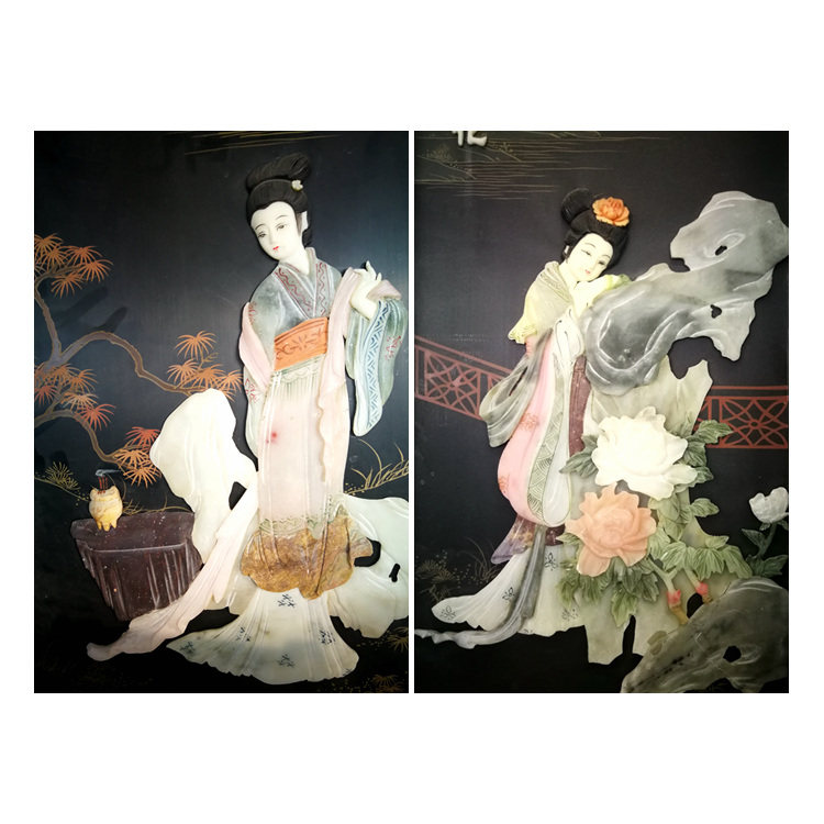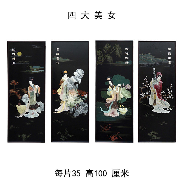 Bone stone inlaid with four screens and hall wall decoration Four beauties Yangzhou lacquerware New Chinese classical home decoration