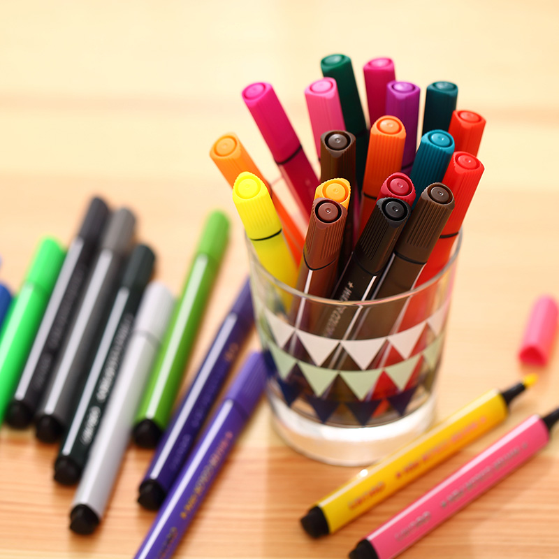 Able Triangle Coarse Rod Washable Student Fine Art Supplies Watercolor Pen Suit Large Capacity Children Graffiti Painting Pen 12 Color 24 Color 36 Color 48 Color Kindergarten Hand Drawing Hard Headplot Brush